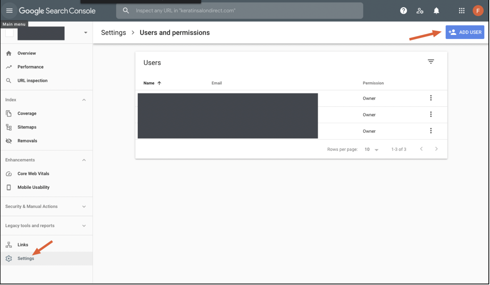 Navigate to Google Search Console Settings & Click on Users and permissions