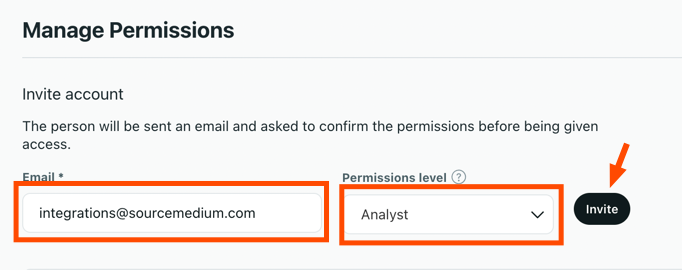Enter the email address “integrations@sourcemedium.com”
