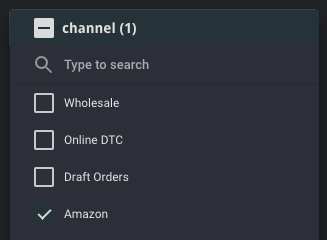 CPA(however, if your Amazon Ads account is integrated in the dashboard thenCPOwill be available)Acquisition Channels(includingSource / Medium)Discount Codes