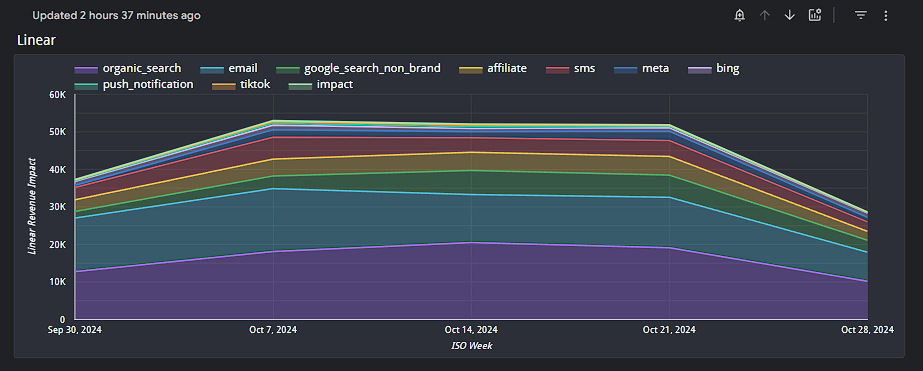 - Purchases and revenue are both attributable metrics, for each of the three model dimensions