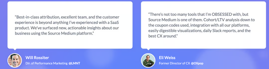 ✅ We’re obsessed with the quality of your data Troublesome Google Analytics and UTM tracking? Are you properly segmenting your spend among sales channels and international markets? How about excluding $0 revenue orders like influencer samples? We won’t rest until your numbers and metrics are accurate and reliable. ✅ We automate your manual work Spending countless hours with error-prone manual data pulls, pivot tables and visualizations? We’ve been there. Our customers save up to 20+ hours per week by replacing unreliable data management tools and processes. ✅ We prioritize accurate last-click attribution SourceMedium uses multiple attribution signals (including UTMs and other touchpoints) and a clear source selection hierarchy to maximize coverage and consistency. ✅ We’re built for omni-channel businesses Our rapidly expanding list of integrations include curated eCommerce, marketing, and operations channels that are interconnected so you can leverage your data for more advanced, cross-channel insights. Retail and offline coverage varies by customer and setup — ask your SourceMedium team if you need retail support.